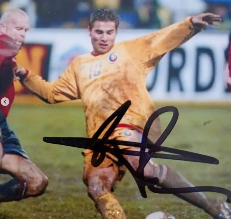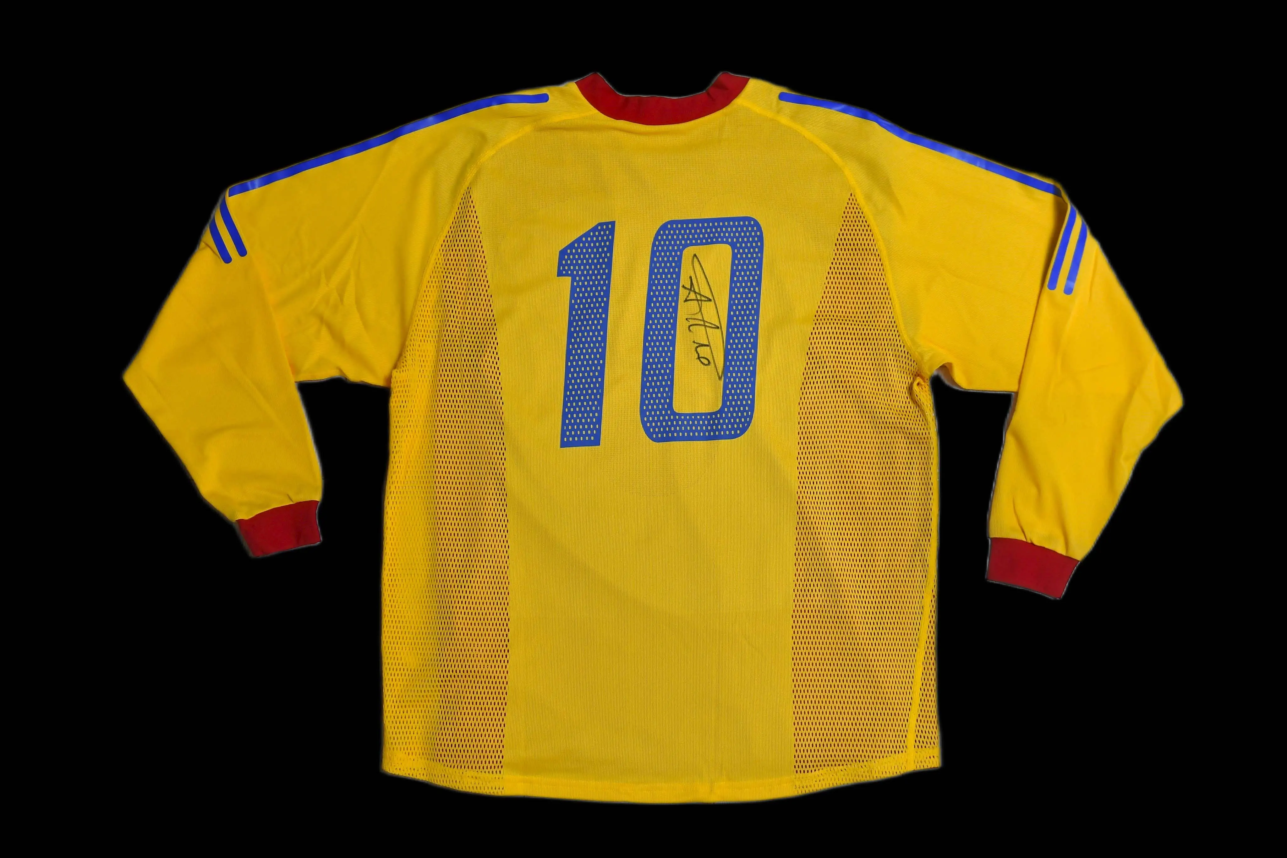 Tricoul a fost purtat in partida echipei similare a Danemarcei si a fost semnat personal de Adrian Mutu .
